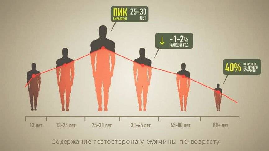 - Возраст – к 30 годам ежегодное падение уровня выработки гормона составляет в среднем 2%;