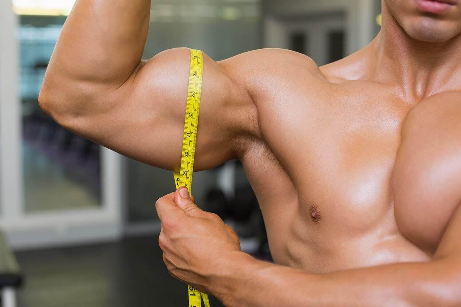Бицепс — сожмите ладонь в кулак и поднимите локтевой сустав на уровень плеча. Измеряйте самую широкую часть бицепса, а именно его пик.
