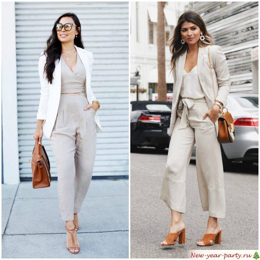 Обратите внимание на стильные брючные костюмы с жакетами в мужском стиле. Надев такой жакет на топ в бельевом стиле, и дополнив образ лодочками на каблуках, вы подчеркнете свою женственность, не оголив ни одной части тела