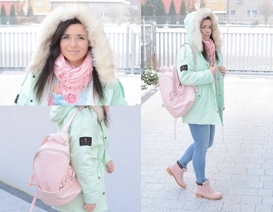 - С парками отлично будут смотреться узкие джинсы, дополненные уггами. Подберите светлый свитер и белый шарф и шапку. Обувь выбирайте в коричневом оформлении. Для завершения наряда используйте светлый рюкзак. В качестве дополнения под парку можно надеть черный жилет.