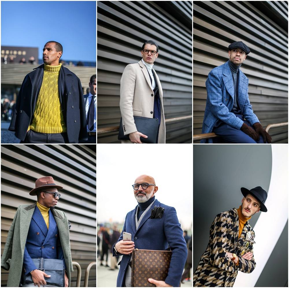 Естественно, многие мужчины выбирают традиционную рубашку и галстук под свои костюмы, однако итальянская выставка рекомендует свитер с высокой горловиной, который был замечен во всей Фортецце – ключевой тренд, который продолжается с последней осени/зимы. Пуловер или водолазка относятся, безусловно, к зимному гардеробу и являются частью многослойного образа – сверху костюм, затем пальто или куртка. Эффект от такого лука очень солидный и позитивный.
