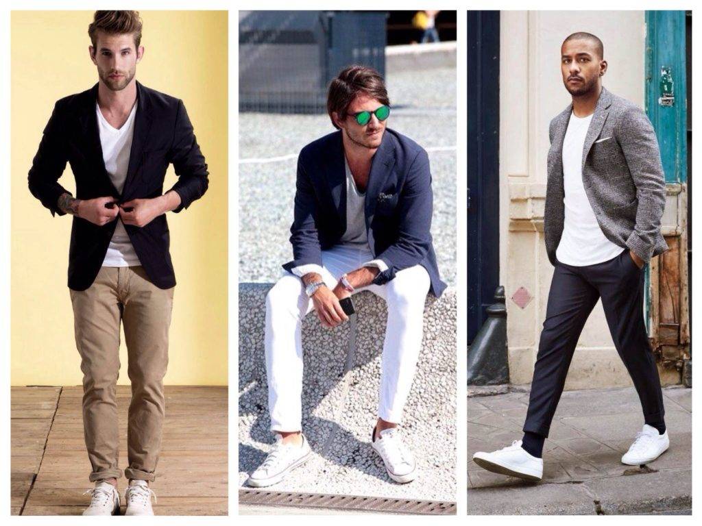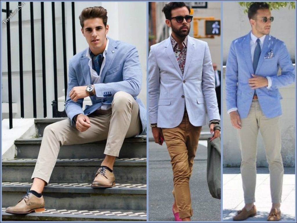 - джинсы, чиносы – любых оттенков, но не совпадающих с цветом блейзера;