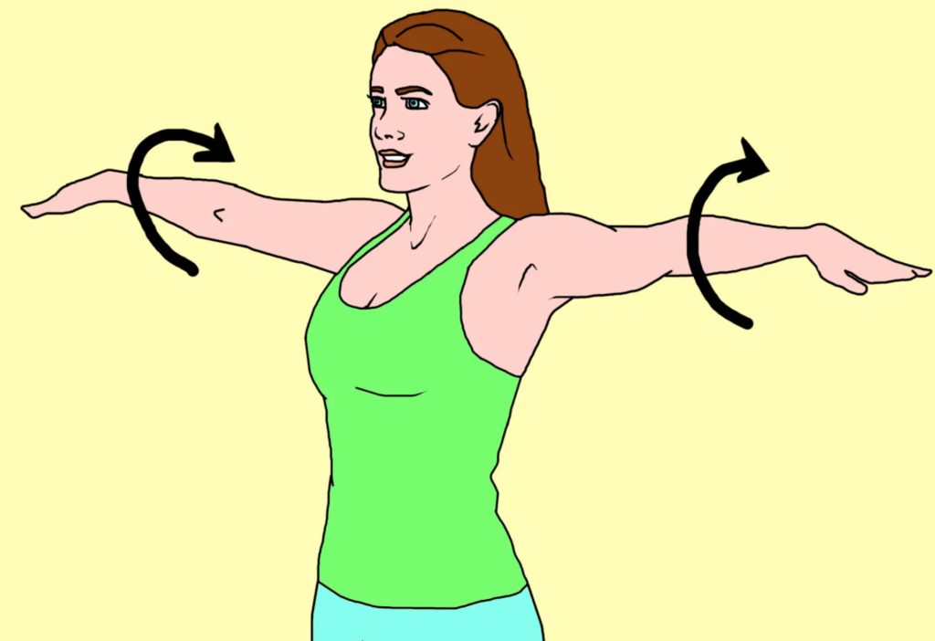 Затем локтевых суставов. В одну и другую сторону по 15-20 поворотов вполне достаточно на каждую руку.