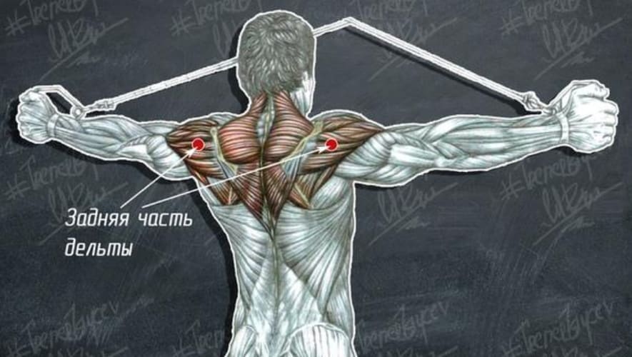 Чтобы облегчить выполнение упражнения, представьте, что разводите не рукоятки, а локти. Так Вам будет легче выполнять обратные разведения исключительно за счет мышц спины и задних дельт, не задействуя в упражнении руки.