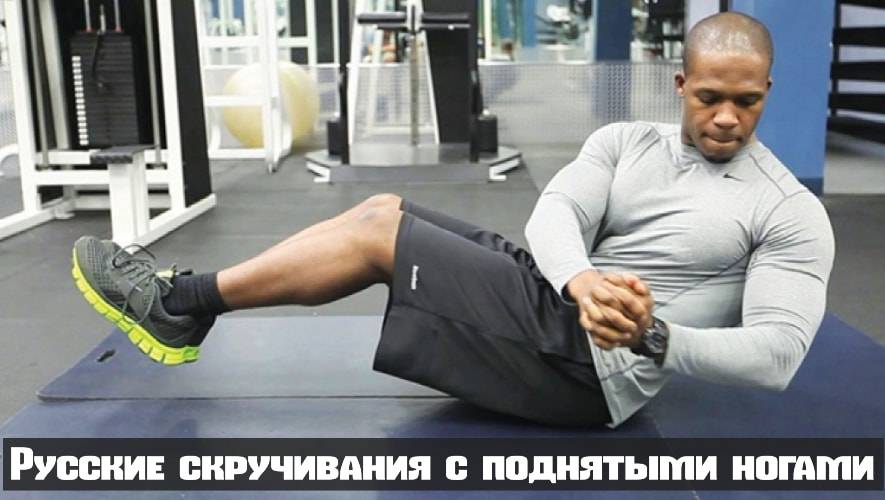 - Скручивания по-русски с ногами на полу. Поставьте пятки на пол, так вы облегчите сложность упражнения. Актуально для начинающих тренирующихся.