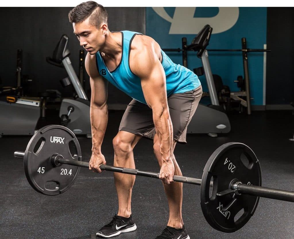 Веса нужно подбирать значительно меньшие, чем в классике и той же румынской тяге. За основу следует взять штангу весов в половину собственной массы атлета (приблизительно)