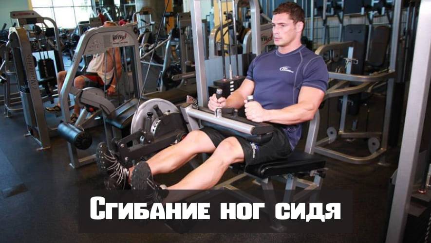 Вариант сидя также является очень известным. Особенно он распространен во время тренировок в стиле » Суперсет». Это когда делают несколько упражнений подряд в одном подходе без отдыха. В основном выбирают разгибание ног сидя на квадрицепсы, а потом сразу же делают сгибания в этом же тренажере. Это очень удобно, потому что не надо бегать по залу. Но если речь идет об обычном линейном тренинге, то сгибание ног сидя уступает лежачему варианту. Все из-за неудобства самого тренажера. Во-первых, чтобы вас не подкидывало от веса отягощения, на ноги сверху давит специальный валик. Иногда конечно он отлично подходит по величине подъема. Но в большинстве случаев либо передавливает ноги или наоборот выходит слишком высоко. Во-вторых, очень сложно сфокусироваться на работе двуглавых мышц. Все потому что во время сгибания надо будет выдвигать таз немного вперед, чтобы почувствовать бицепс бедра и увеличить амплитуду движения. А как известно, если делать два дела разом, то какое, будет отставать. Вывод: если вы тренируетесь по системе суперсет, или у вас нет в зале другого тренажера. Тогда вариант сгибаний сидя, будет хорошим помощником для вас.