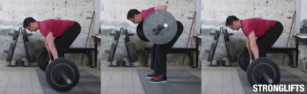 спортсмен наклоняется вперед выполнять тягу штанги в наклоне становится тяжело,