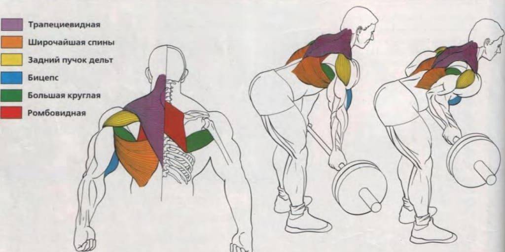 Какие мышцы задействует тяга штанги в наклоне?