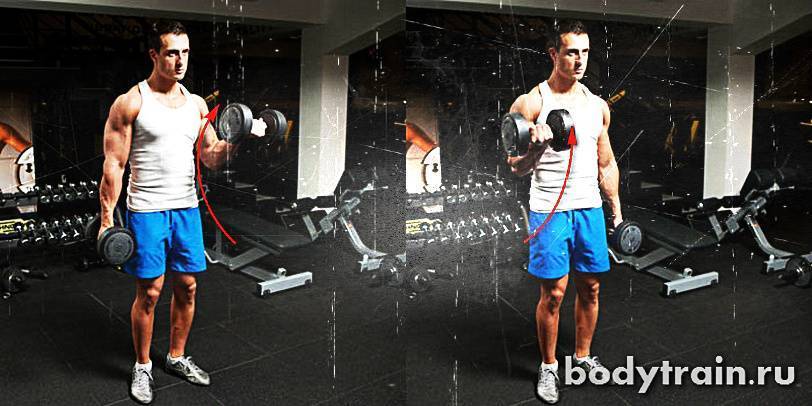 В чем соль данного упражнения? Во время подъема предплечье разворачивается, мизинец старается оказаться как можно выше большого пальца. За счет включения в работу двух функций бицепса – и разворота, и подъема предплечий бицепс работает по полной программе.