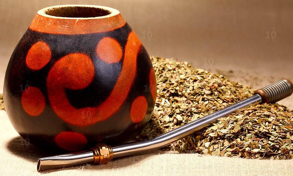 Кроме огромного количества полезных веществ, особое внимание привлекает сосуд, из которого пьют матэ – это калебас, его делают из тыквы-горлянки, а пьют напиток через бомбилью – трубочка с ситечком на конце
