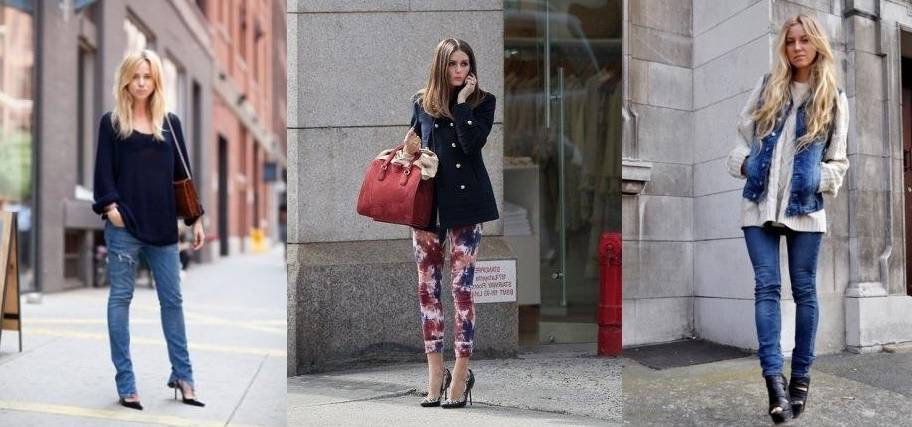 Джинсы также подходят для создания образа в стиле бизнес-кэжуал. Отдавать предпочтение нужно классическим моделям нейтрального синего цвета. Для придания образу элегантности и утончённости можно добавить к джинсам туфли-лодочки.