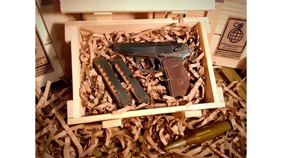 - шоколадный набор – в форме оружия, инструментов, дорогого алкоголя и пр.