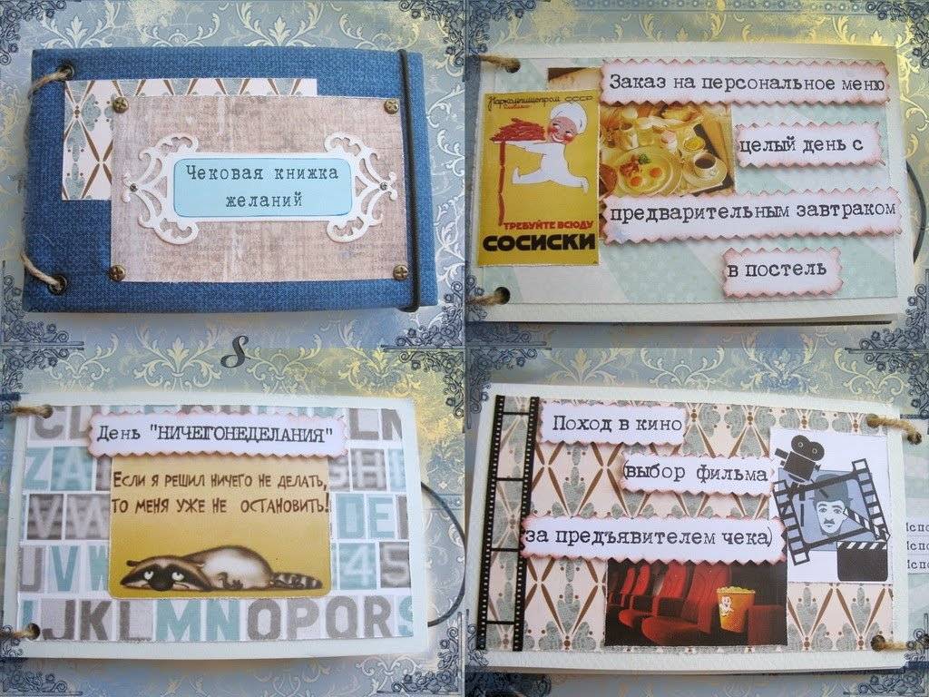 Чековая книжка желаний. Здесь придется поразмыслить, что можно было бы предложить мужчине. Такой подарок можно преподнести любимому человеку. Оформите книжку так, чтобы ей было удобно пользоваться, но в то же время она обладала незабываемым дизайном.