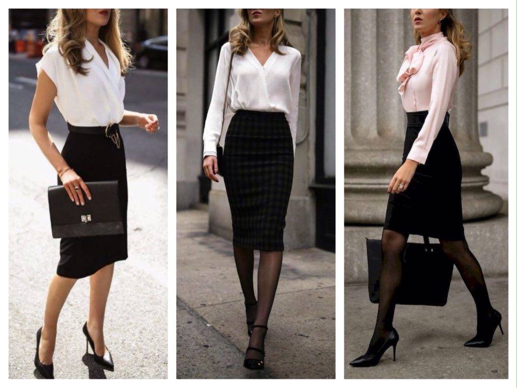 Если в качестве нижней части выступает юбка, важно, чтобы ее длина была максимум на ладонь выше колена (хотя в некоторых компаниях это уже может быть отступлением от правил)