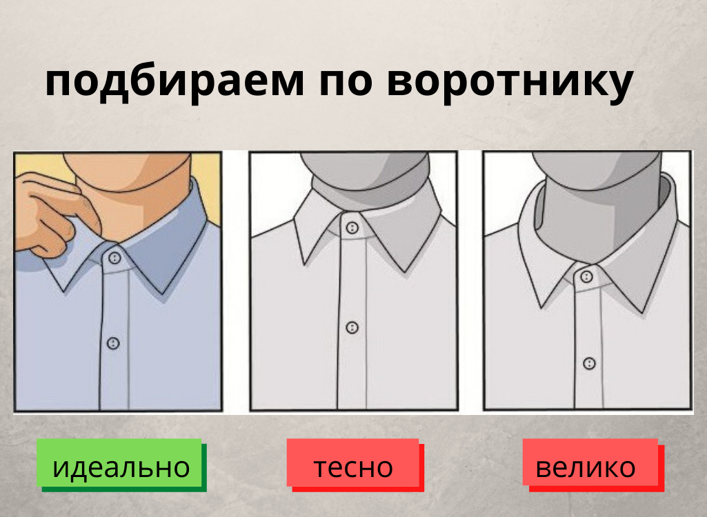 Плотное прилегание к шее и ощущение давление показывают, что воротничок слишком мал. Из-за этого мужчина будет чувствовать дискомфорт. Но, если воротник вообще не прикасается к шее, а между ним и горлом можно просунуть несколько пальцев, размер больше, чем нужно.