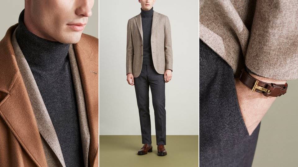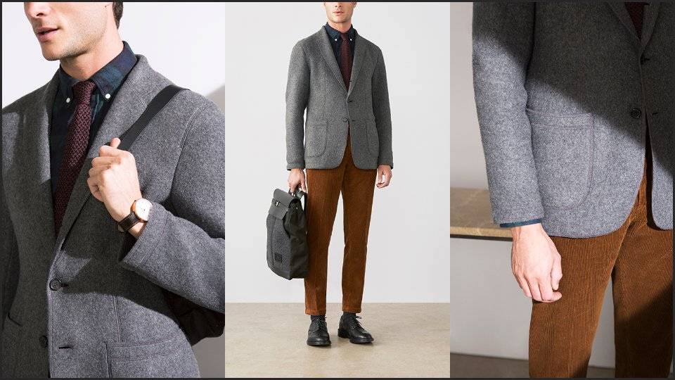 В этом неформальном уровне хороши костюмы в клетку, в «елочку», в крупную полоску, вельветовые или льняные костюмы, твидовые и замшевые пиджаки.
