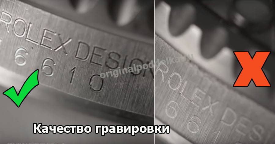 Внимательно рассмотрите циферблат. Все надписи на циферблате выгравированы, выглядят четко и безупречно. Расстояние между буквами и цифрами одинаковое. Если есть малейшая неровность или ошибка в написании – это фальшивка.