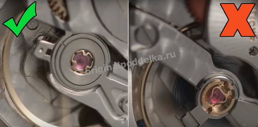Механизм оригинальных изделий отличается безупречной работой и тщательной подгонкой деталей, недостижимой для подражателей. Поэтому надо внимательно рассмотреть движения секундной стрелки и послушать тиканье часов