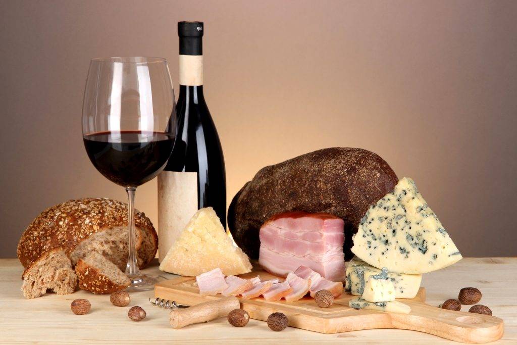 Для сухого и полусухого вина лучше всего подойдет твердый сыр, мясной рулет, ветчина, персики, сладкие яблоки. Со сладкими и полусладкими видами вин отлично сочетаются рыба и морепродукты, французские сыры, птица, десерты, фрукты (например, виноград, манго).
