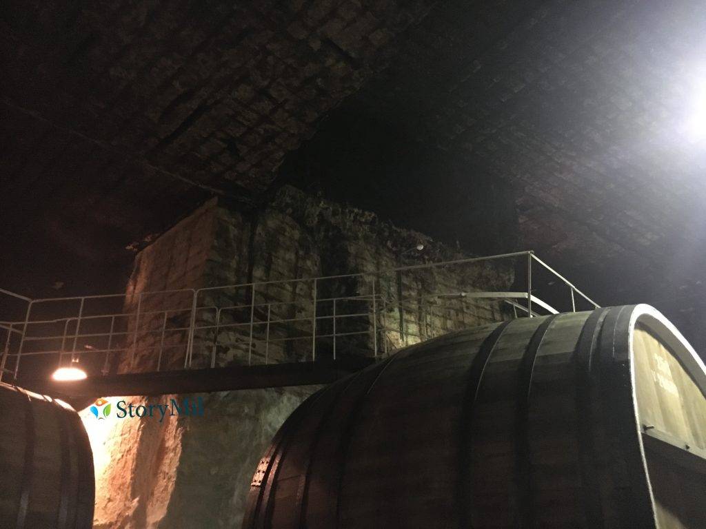 Нам посчастливилось попасть на завод красных вин в пищерах Инкермана. На фото бочки, в которых хранится и выдерживается вино. Бочка может содержать до 2 500 литров вина.