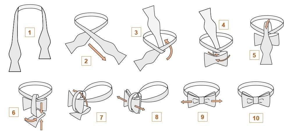 Удобная схема в картинках нагляднее объяснит, как завязывать галстук бабочку.