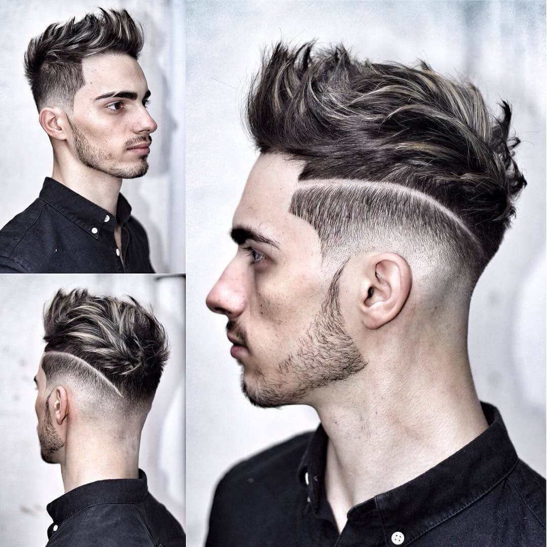 Взъерошенные волосы, уложенные в хаотичном порядке в сочетании с оригинальными рисунками, которые выбриваются на височной части или на затылке, создаст поистине уникальный, яркий и интересный образ современного привлекательного молодого человека. Для правильного ухода за таким видом стрижки необходимо учитывать следующее: если мужчина является обладателем тонких и прямых локонов, то для создания хаотичной формы на голове достаточно будет использовать легкий воск. Однако для жесткой и густой шевелюры потребуется применения глины или тяжелого лака, посредством которых волосы становятся послушными. В качестве дополнения к укладке можно добавить яркие детали в виде узоров на затылочной части или в области висков. Они помогут придать стрижке андеркат еще большей неординарности внешности и общему стилю.