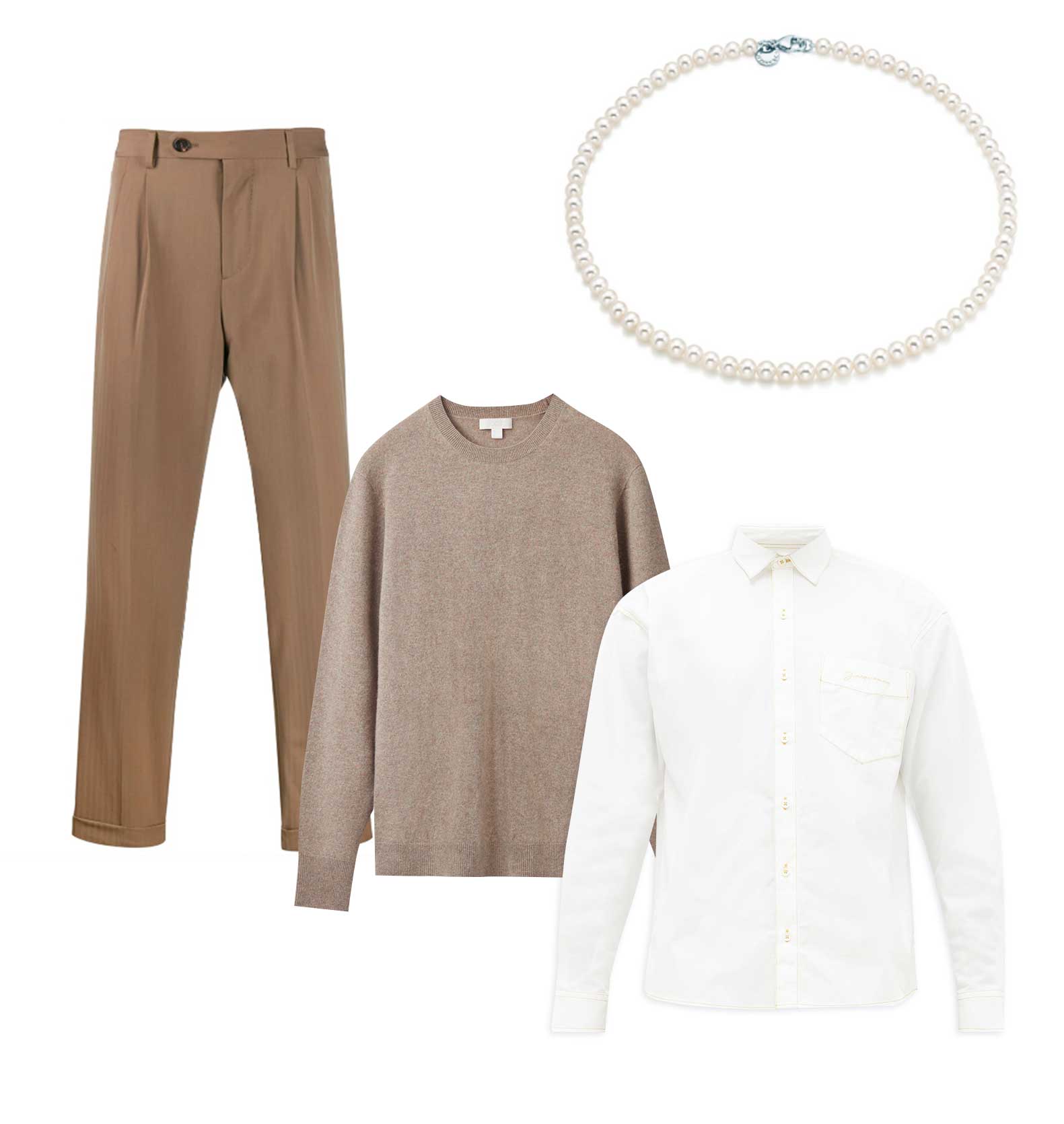 Жемчуг издревле был аристократическим, статусным символом, и раньше его носили как мужчины, так и женщины. Сейчас в мужские гардеробы жемчуг возвращается в виде моносерег (важная тенденция следующей осени), брошей и запонок, бусы же — следующий уровень смелости.