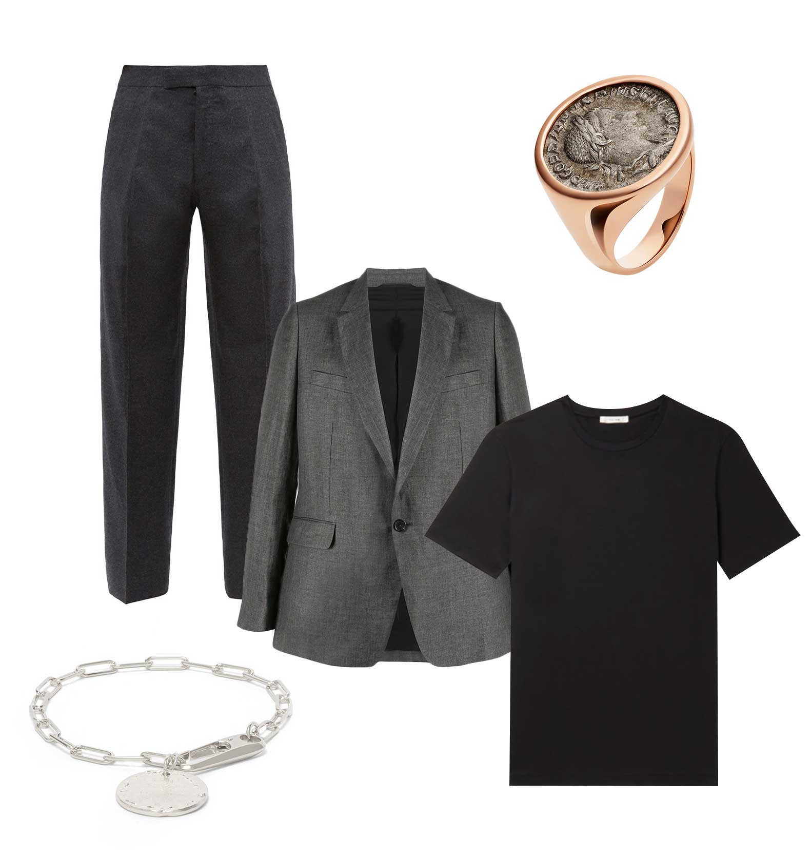 Если же бриллианты и жемчуг вам нравятся на других, а для себя хочется чего-то попроще, то свой путь в мире мужских украшений можно начать с перстней и лаконичных колье или браслетов. Лучше всего они выглядят в сочетании: массивные перстни при визуальной поддержке минималистичной подвески, колье-цепи или браслета из простых бусин не потеряются в образе и не будут выглядеть одиноким акцентом.