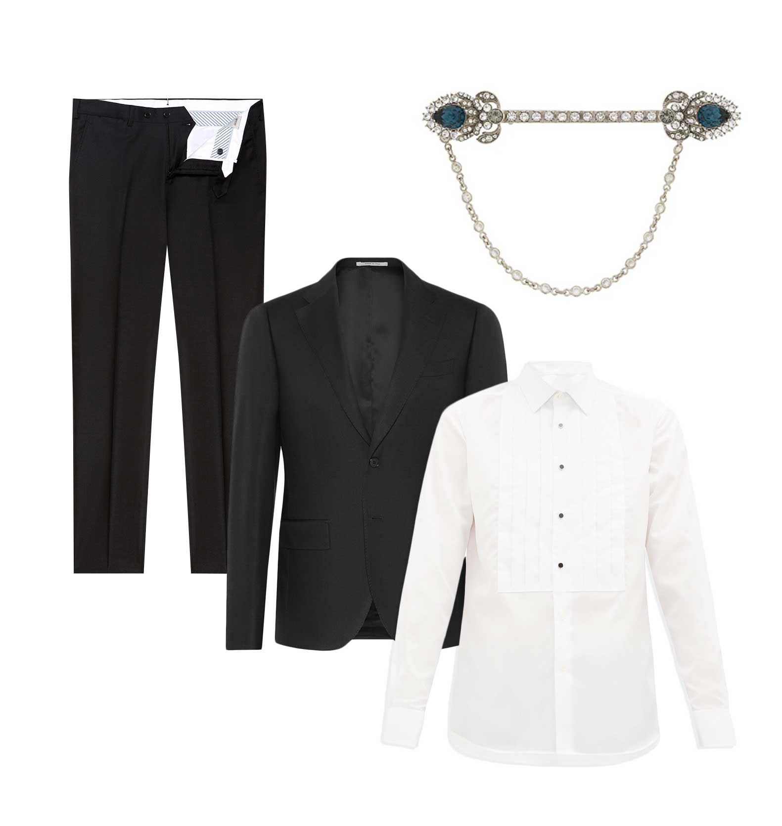 Вспомним : мало кто из гостей-мужчин позволил себе отступить от строгого и торжественного black tie, зато некоторые разнообразили свои наряды украшениями. Брошь на лацкане пиджака — идеальный вариант фактически для любого случая. Она может быть как едва заметной, так и крупной, ироничной или роскошной, отсылать к старинным украшениям или к современному искусству. А еще брошей на одном лацкане может быть несколько.