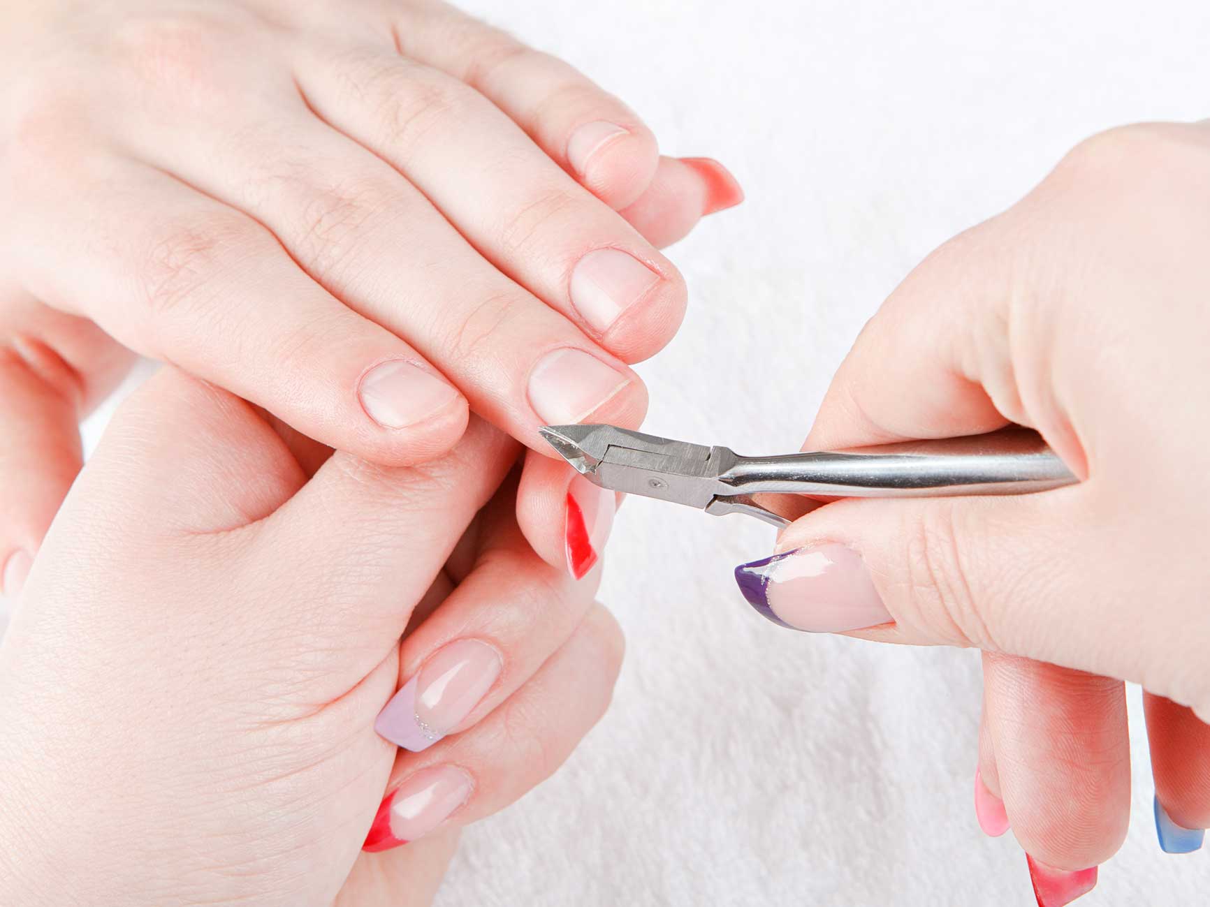 - при помощи специальных щипчиков избавьтесь от всех заусениц и грубой кожи вокруг ногтя;
