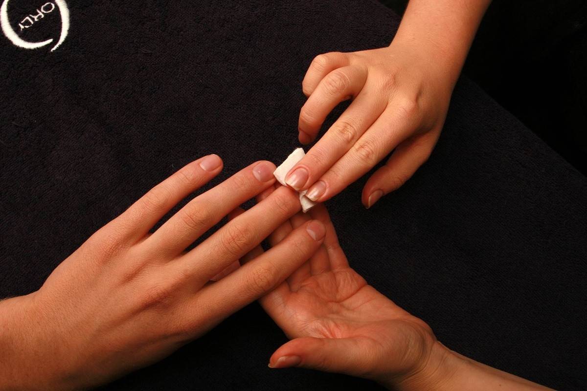 Как известно, чем лучше холст, тем проще художнику создать шедевр. Так и качество маникюра во многом зависит от подготовительных мер и используемых средств и инструментов. Поэтому для начала необходимо провести ряд важных действий. Прежде всего следует удалить старое лаковое покрытие. Ватный тампон пропитывают специальной жидкостью и затем очищают ногтевую пластину.