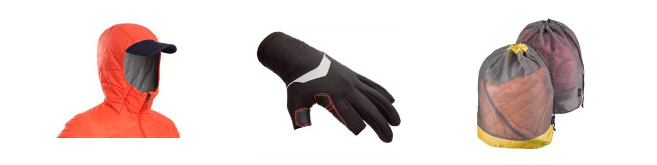 На холодную погоду тоже нужно иметь перчатки. А еще во время дождя отлично спасает козырек или кепка и капюшон, который закроет уши. Зонтик в этом случае не подойдет – руки постоянно будут заняты. На берегу лучше всего иметь комплект сменной одежды вплоть до обуви и носков.