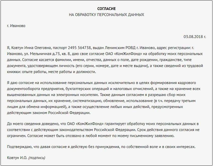 Как заполнить согласие на обработку персональных данных