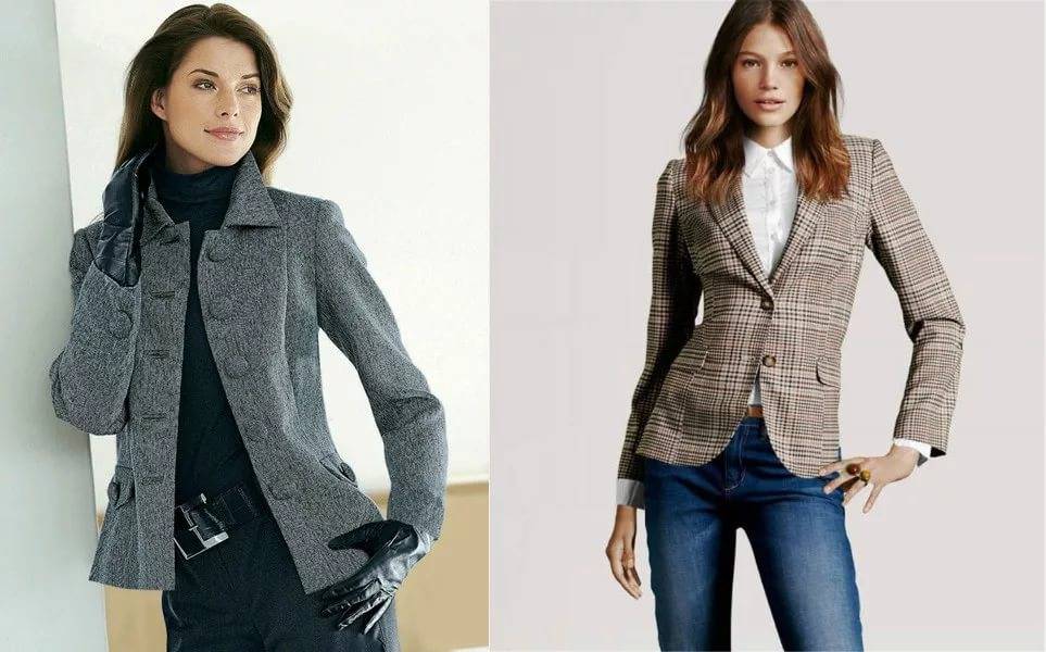 Одежда из твида требует правильной носки, только при выборе подходящих деталей гардероба жакет будет действительно украшать фигуру.