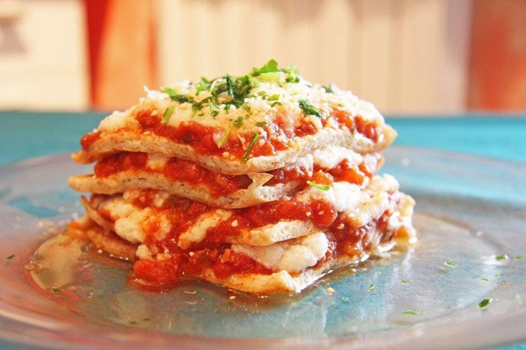 Протеиновые блинчики из лазаньи с соусом болоньезе