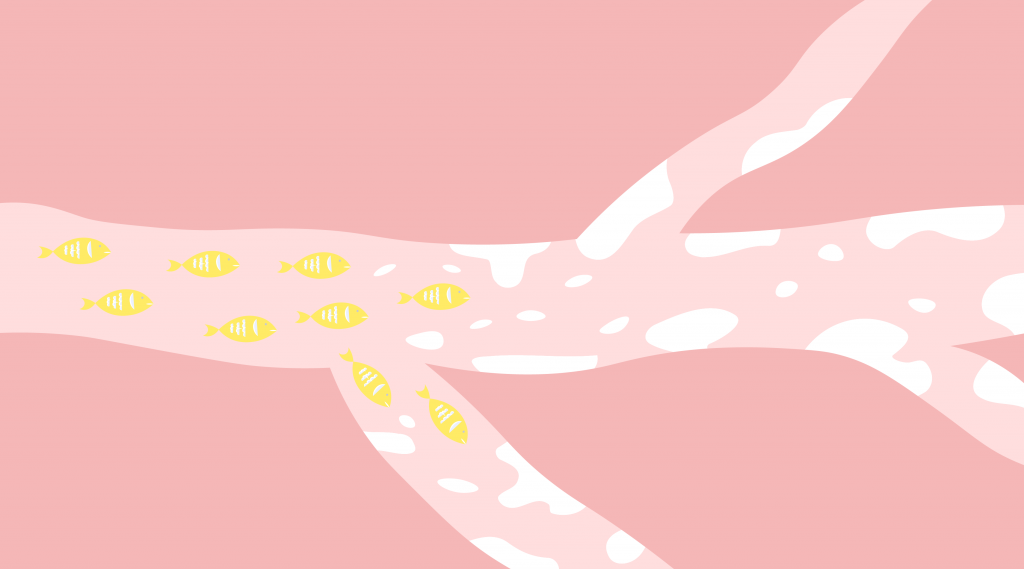 - Олеиновая кислота. В медицине этот компонент также носит название Омега-9. Кислота способствует снижению вредного холестерина в крови человека, что не дает бляшкам из холестерина образовываться в сосудах и накапливаться там. Таким образом, прием рыбьего жира дает возможность предупредить развитие тромбоза и атеросклероза, которые могут привести к смерти пациента. Дополнительно олеиновая кислота помогает избежать развития опухолевых заболеваний, так как блокирует развитие раковых клеток и не дает им дальше разрастаться.