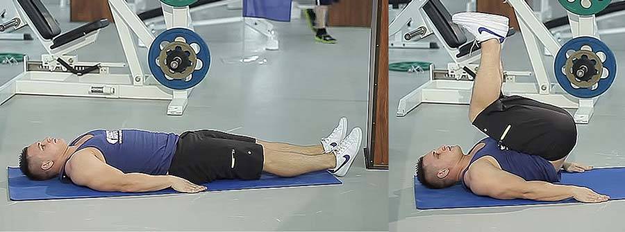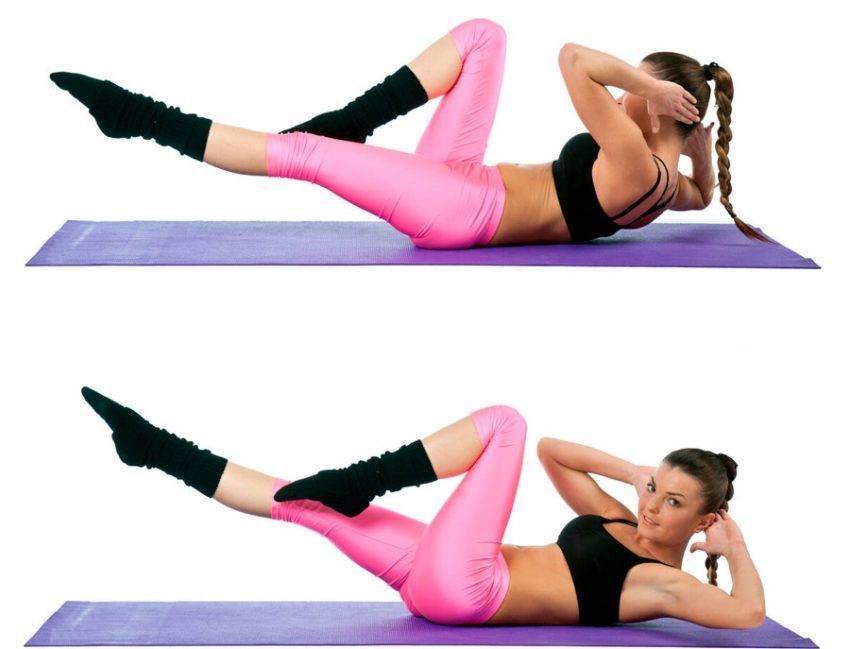 Обратные скручивания лежа на полу. Из положения лежа вам необходимо поднимать ноги, согнутые в коленях к груди, приподнимая низ поясницы.