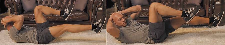 - Ключевой момент этого упражнения – постоянно прижатая к полу спина. Упражнение выполняется за счет скручивания пресса, а не за счет каких-либо дополнительных движений плечами или бедрами. Их как раз стоит избегать;