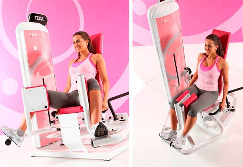 - Дать универсальный совет относительно наклона спинки тренажера не получится. У многих людей не получается развести ноги на достаточную ширину, если они слегка наклоняют корпус назад. У тренажеров для этого упражнения есть несколько углов наклона спинки, поэтому нужно просто поэкспериментировать и найти свой;
