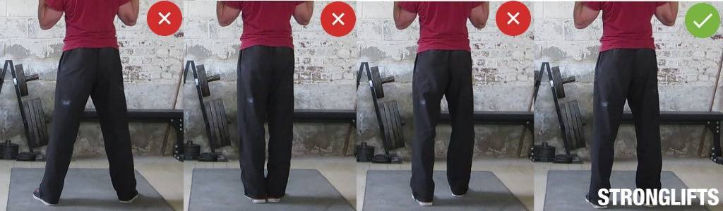 - Если нет возможности опустить штангу на нужную глубину, атлет должен поменять хват, но не до состояния, когда угол в локтях окажется тупым;