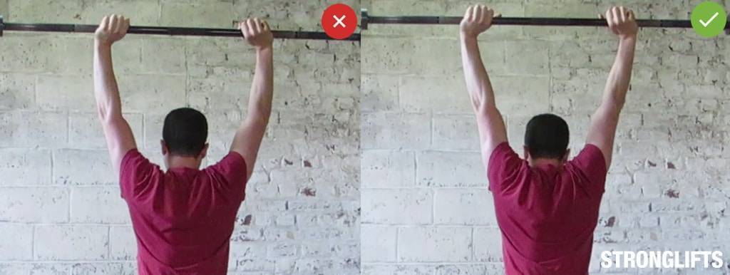 - Слишком широкий хват перегружает связки локтевого сустава и бицепсы, он дискомфортен;