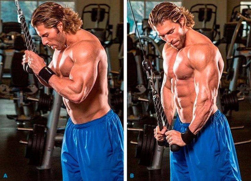 Каким бы эффективным ни было упражнение, его выполняют в сочетании с другими. Также и с разгибанием мышц в блоке.