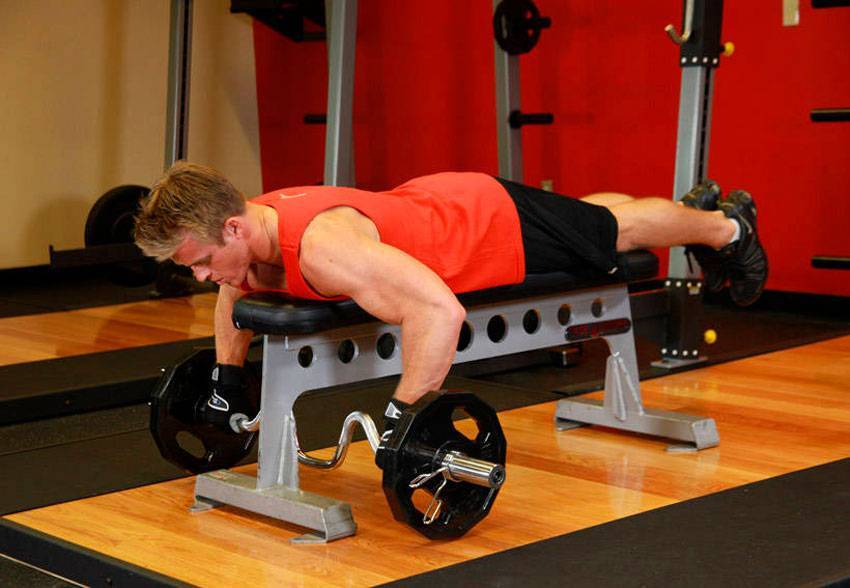 - Старайтесь сосредоточиться на работе целевых мышц. Не поднимайте штангу только усилиями бицепса.