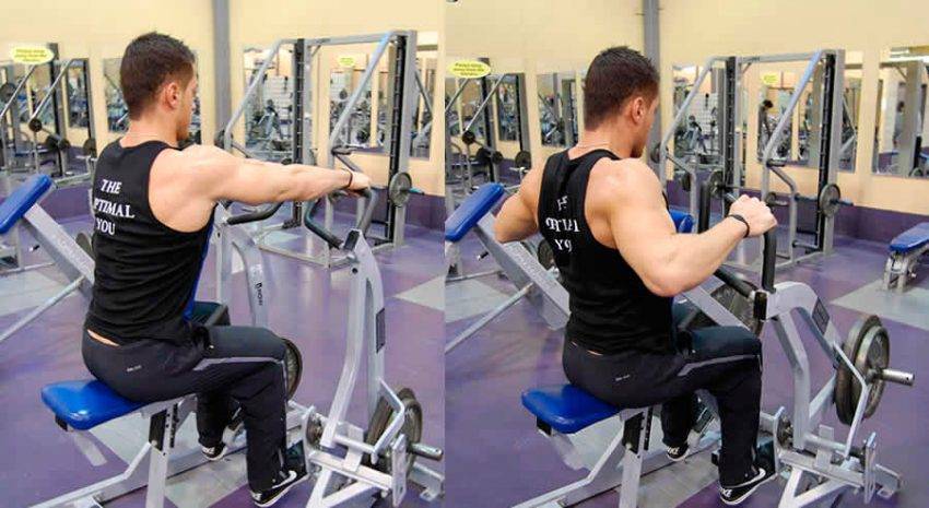 Это реализуется благодаря фиксации амплитуды движения по одному из векторов направления. Если взять штангу, то в процессе тяги она может двигаться во всех плоскостях, уходить в стороны, вперед и назад. С т-грифом такого не сделаешь, он зафиксирован и амплитуда движения известна заранее. Такая специфика, позволяет брать веса немного больше чем в тяге штанге, ведь не нужно тратить дополнительные усилия на стабилизацию и технику. Тяга т образного грифа выполняется за счет сведения лопаток, куда уходит целевая нагрузка.