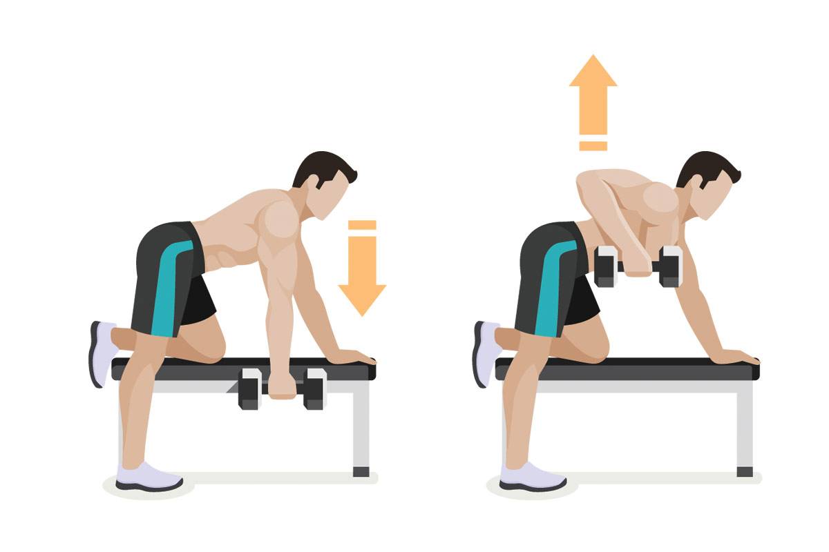 Тяга гантели к поясу // Тяга штанги в наклонеУпражнение для придания мышцам спины толщины. Цель — вовлечь в работу широчайшие мышцы, а не просто поднять как можно больший вес гантели за счет мышц рук. Следите за тем, чтобы позвоночник был прямым и не выгибался (особенно вверх). 3-4 подхода по 7-10 повторений |