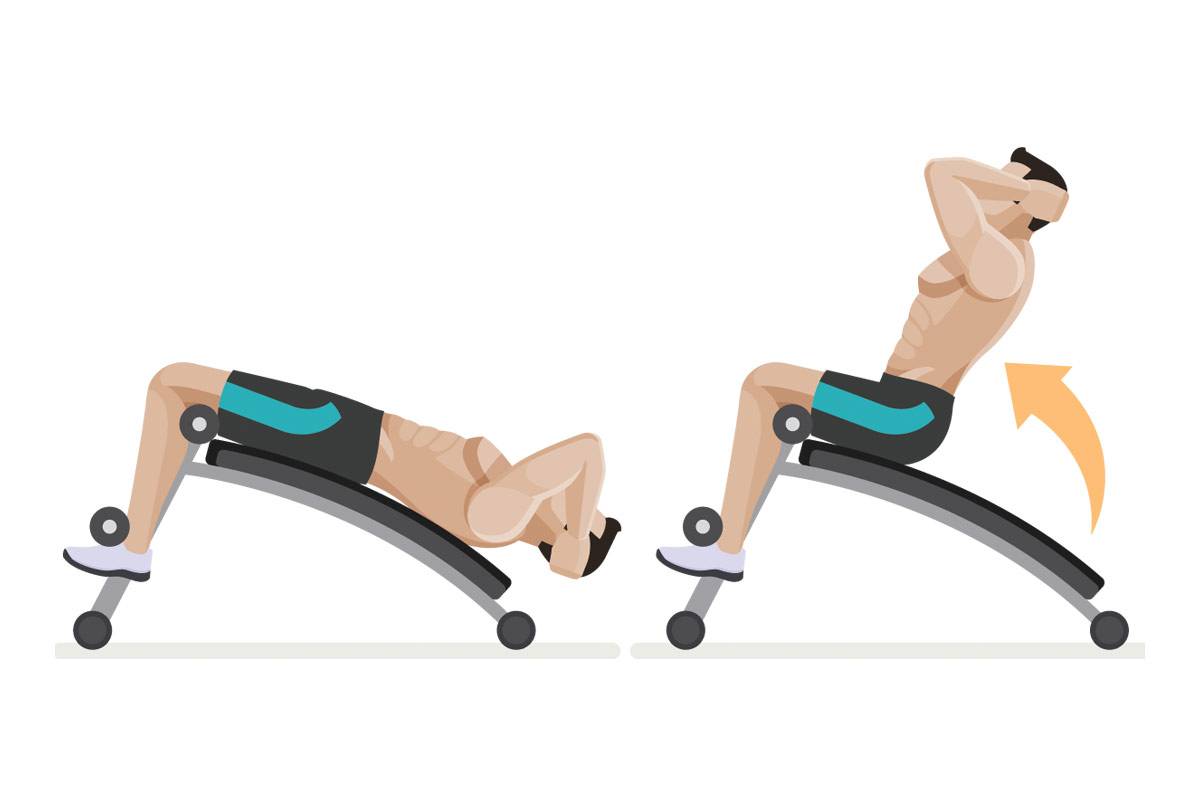 Скручивания на скамьеУпражнения для развития прямых мышц живота. При подъеме вверх не задерживайте дыхание и следите за тем, чтобы нагрузка не переходила на поясницу и низ спины. В верхней точке напрягите пресс еще сильнее. 3-4 подхода по 10-15 повторений |