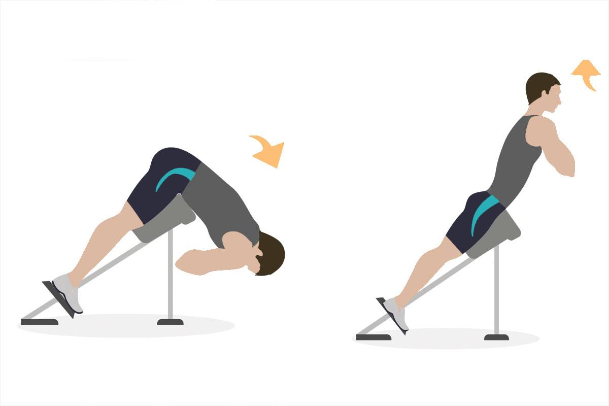 ГиперэкстензияУпражнение для укрепления нижней части спины и поясницы. Может выполняться как в динамическом, так и в статическом варианте. При подъеме вверх следите за тем, чтобы не подниматься слишком высоко, выгибая позвоночник назад. 2-3 подхода по 10-15 повторений |