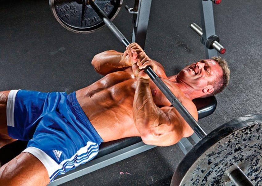 Выжимания грифа в положении лежа тренируют абсолютно все тело, поэтому и считаются базой, польза очевидна.